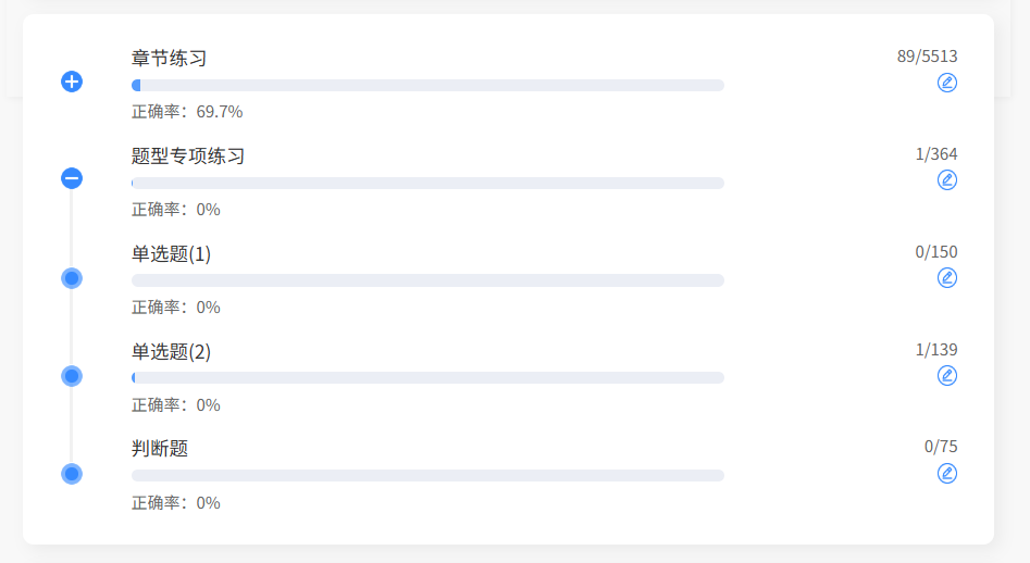 详细记录每次练习的做题时间、完成数量、正确率、错题分布等关键信息,考生可随时查看单次练习或阶段性(如每周、每月)的学习数据,直观了解自身学习投入与效果。