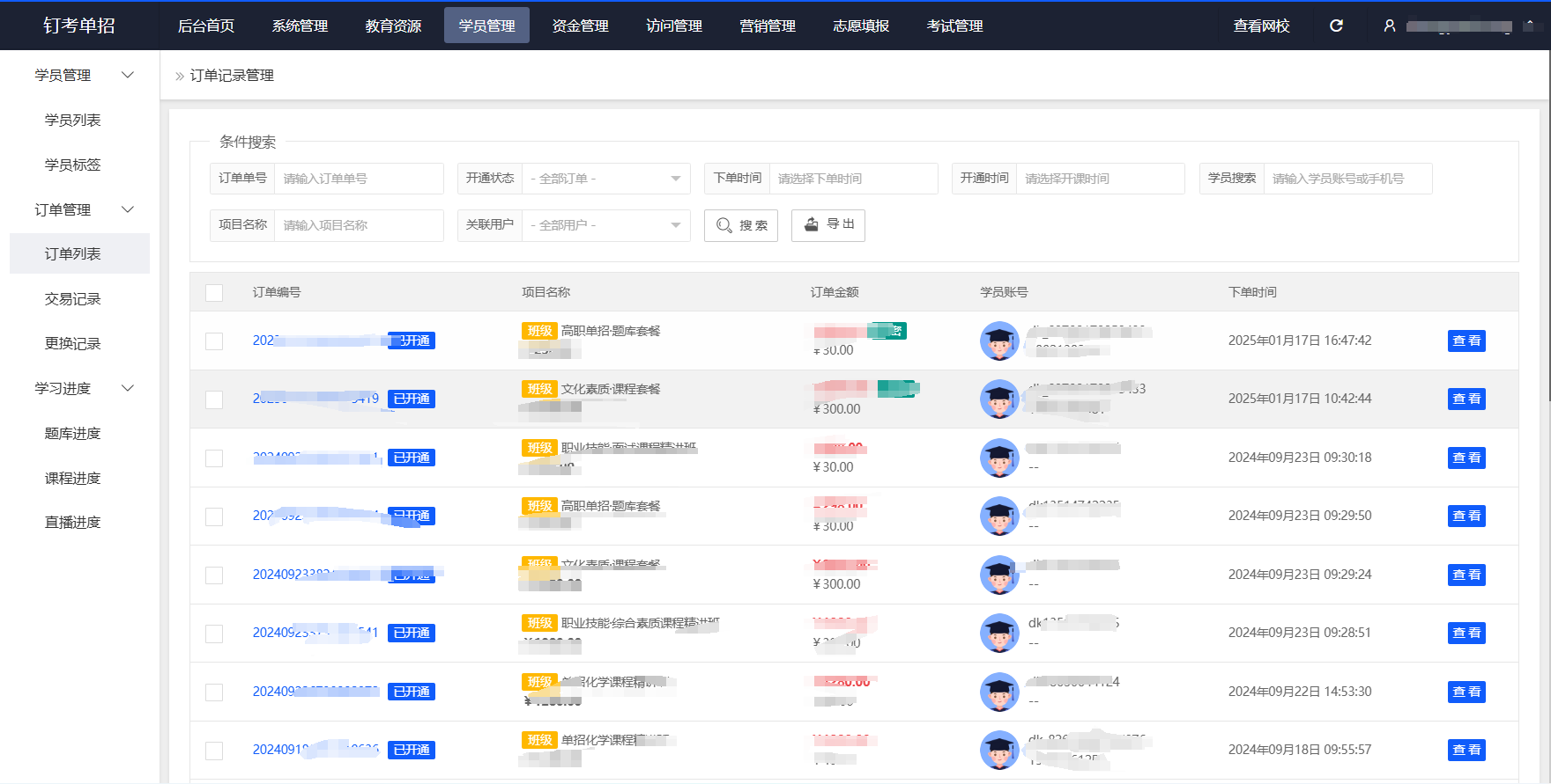 实时同步学员课程购买、退课、学习卡开通等数据,机构可直观掌握热门课程和热门题库,针对性调整招生策略;同时为学员提供便捷的在线支付通道,简化购买流程,减少因操作复杂导致的流失,让转化更顺畅。