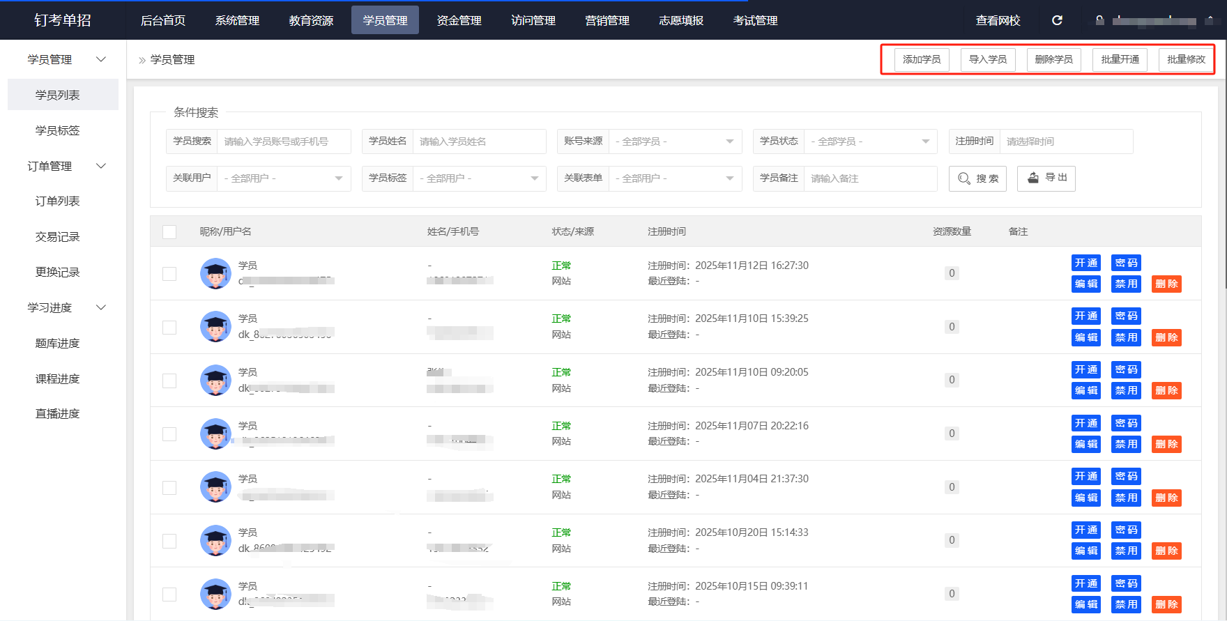 支持批量开课、资料修改、学员信息编辑等高效操作,告别手动录入的繁琐;更能根据学员学习进度、测试成绩,自动生成个性化学习路径,比如为基础薄弱学员推送补漏基础试题,为冲刺阶段学员匹配真题,让教学服务更精准,学员满意度和转介绍自然提升。