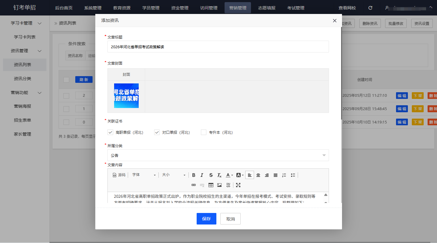 • 专业背书增强信任:可以公告各省单招备考指南、院校录取数据,给学员和家长提供志愿填报参考,打造“教学+规划”的一站式服务,让家长觉得“选择你更放心”。