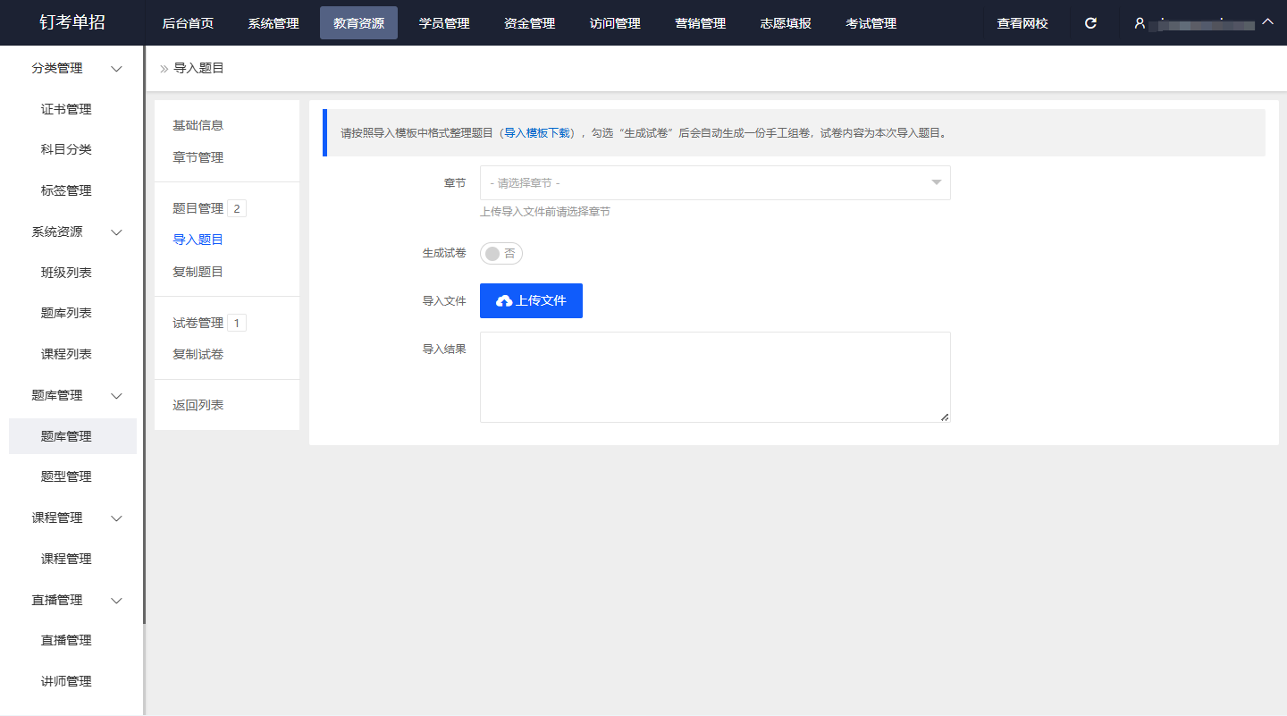 • 资源安全有保障:自建题库支持Word、PDF批量导入,题库自动加密,防止优质真题、内部讲义泄露,牢牢掌握核心教学资源。
