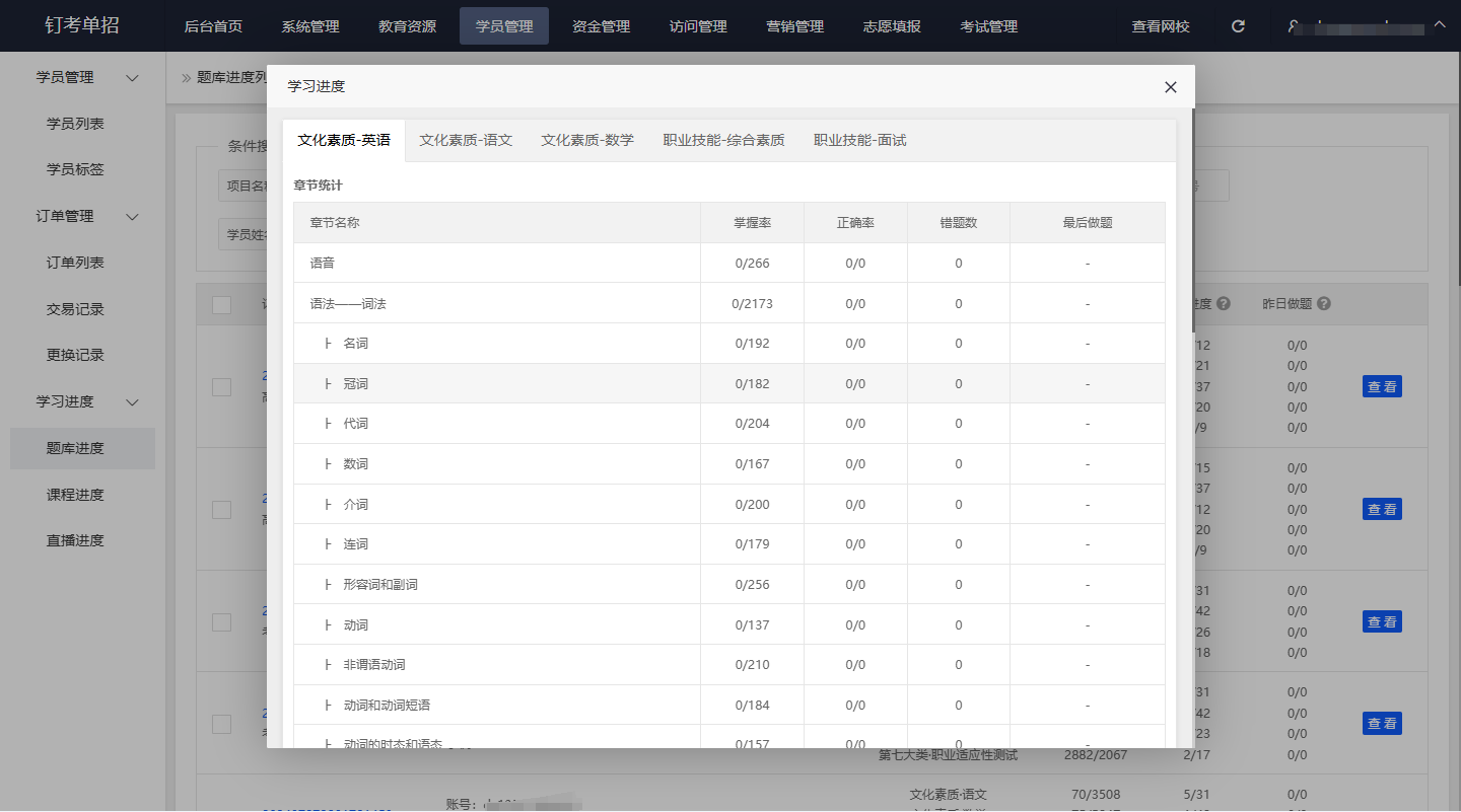 • 学员专属学情档案:系统自动记录每一位学员的刷题数据,包括知识点掌握度、错题、答题速度,哪个模块弱、进步多少,一目了然。