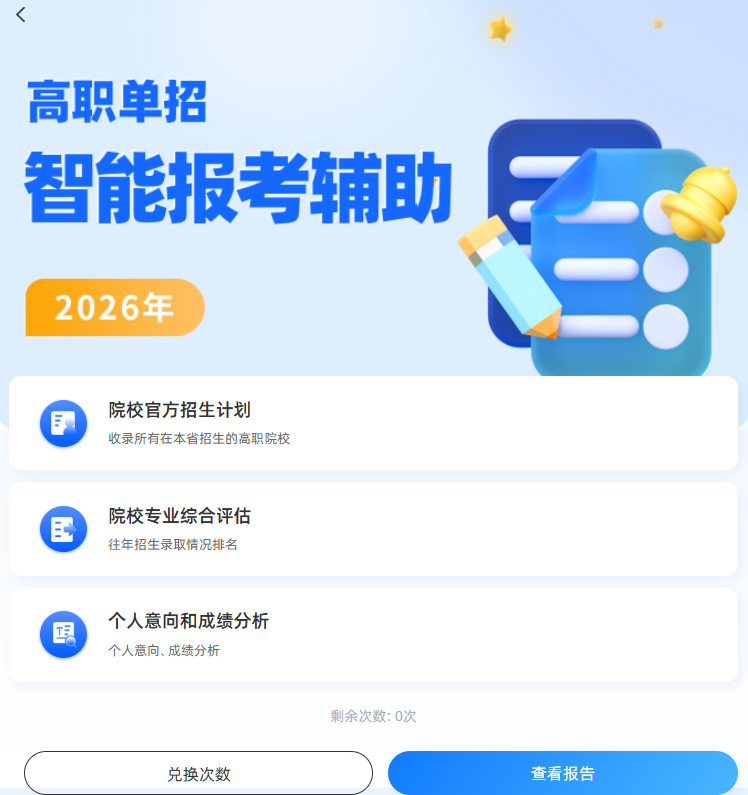 2026河北单招迎来志愿填报大变革,从10个志愿升级为96个“专业+学校”平行志愿,且取消专业调剂,“考得好更要报得好”成为考生和家长的核心共识。面对考生的填报焦虑、家长的选择难题,单招教培机构亟需一款专业、高效的志愿填报工具,既能解决学员核心痛点,又能为机构打造新的盈利增长点。
