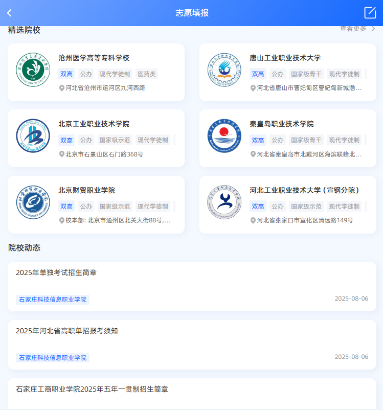2、大数据加持,数据实时更新:整合近3年河北单招院校投档分、位次、招生计划、专业录取数据,结合2026年最新招生动态实时更新,为志愿填报提供精准数据参考;
