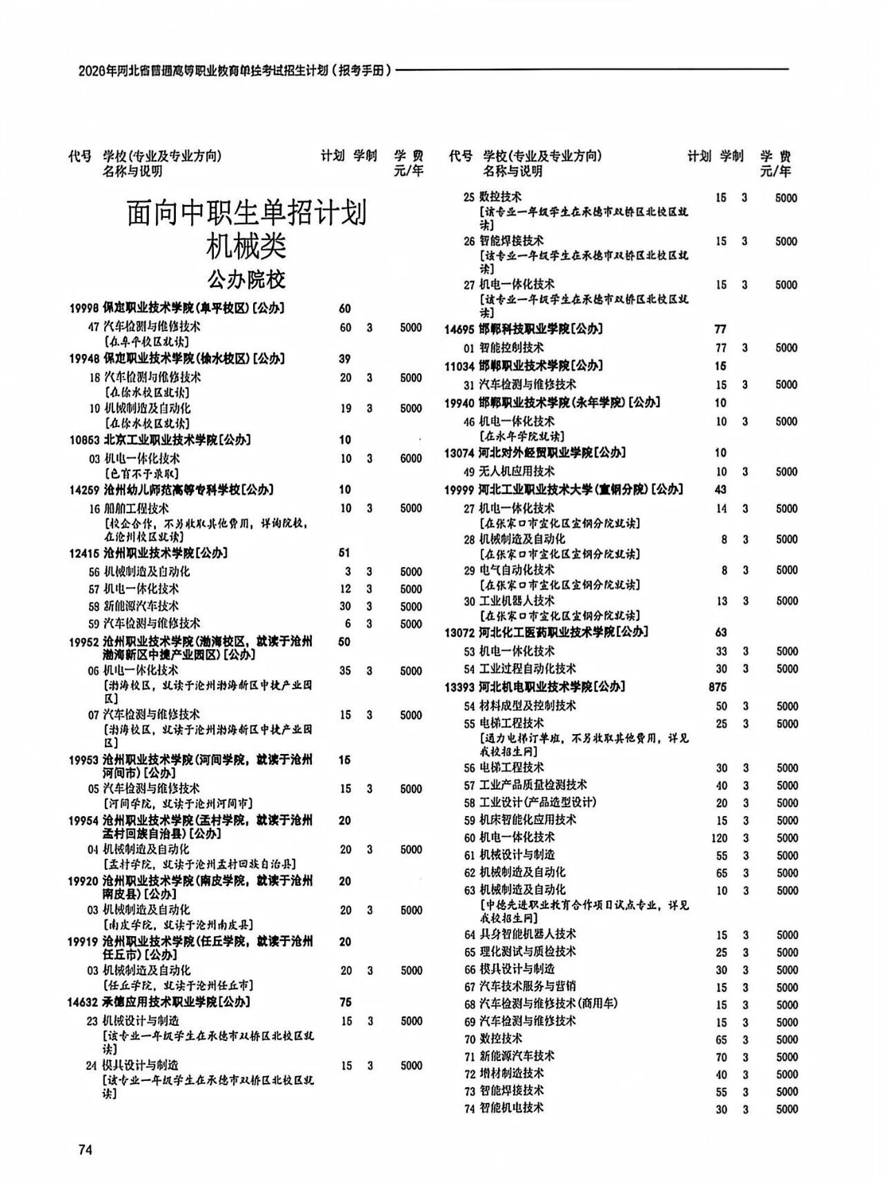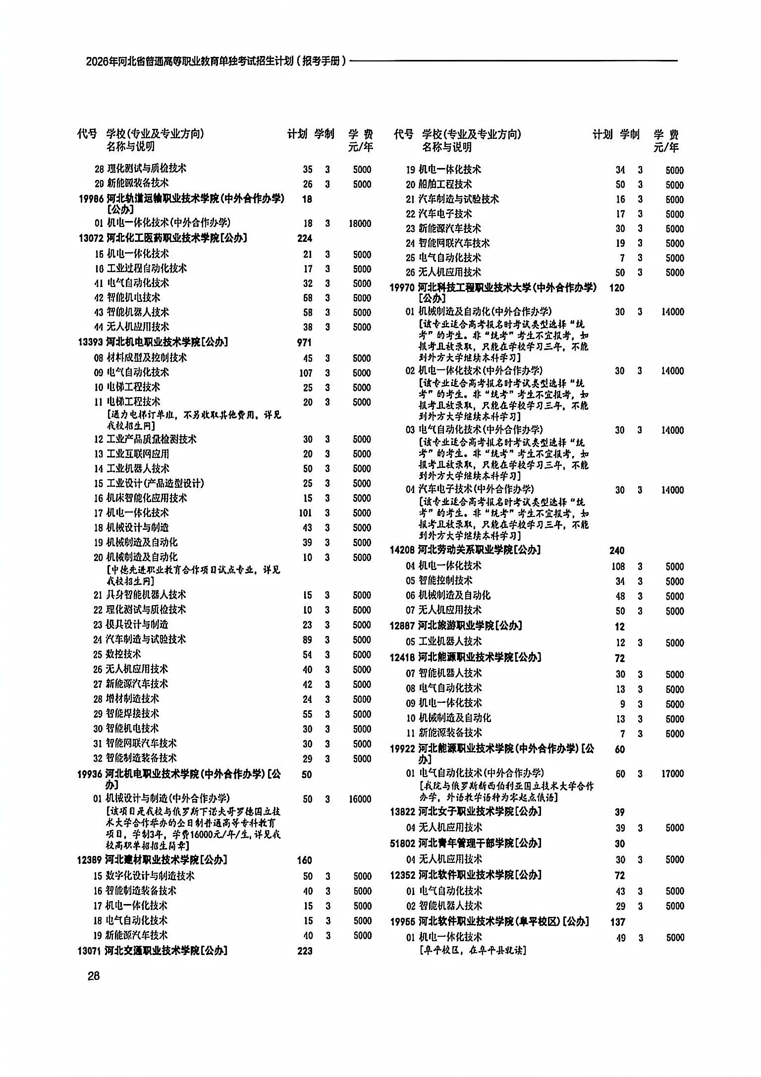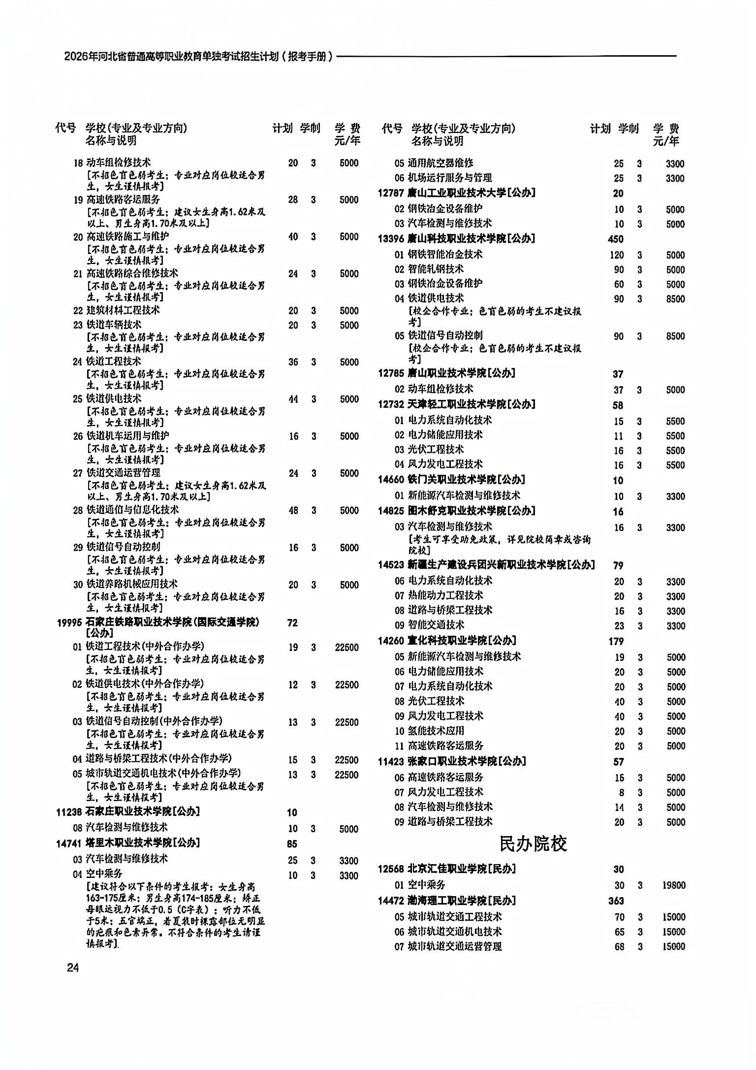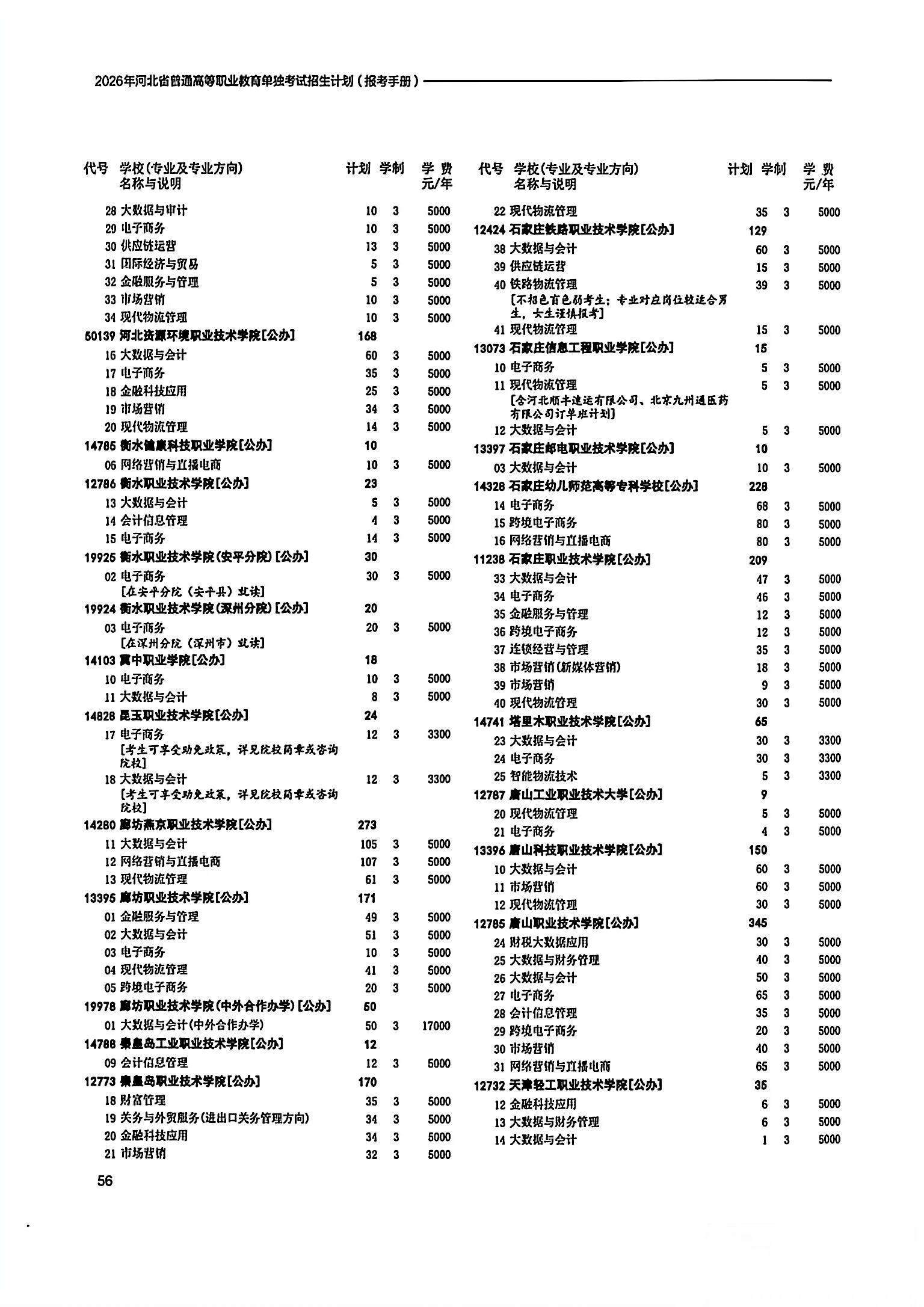 以下是《2026年河北单招各院校招生计划》大家可以提前参考~