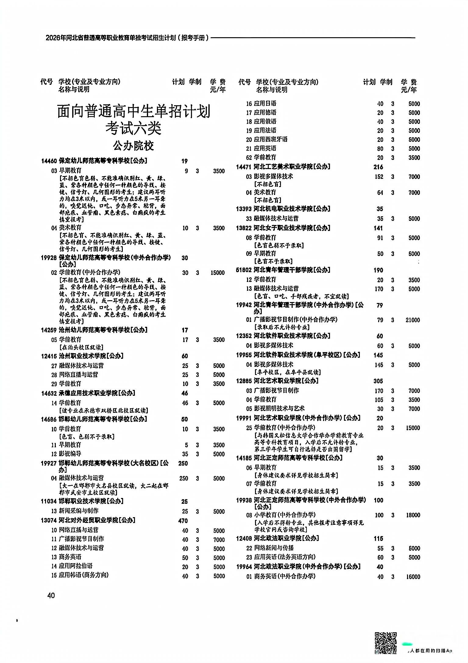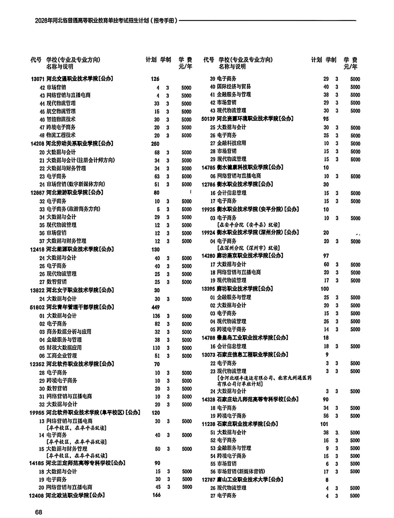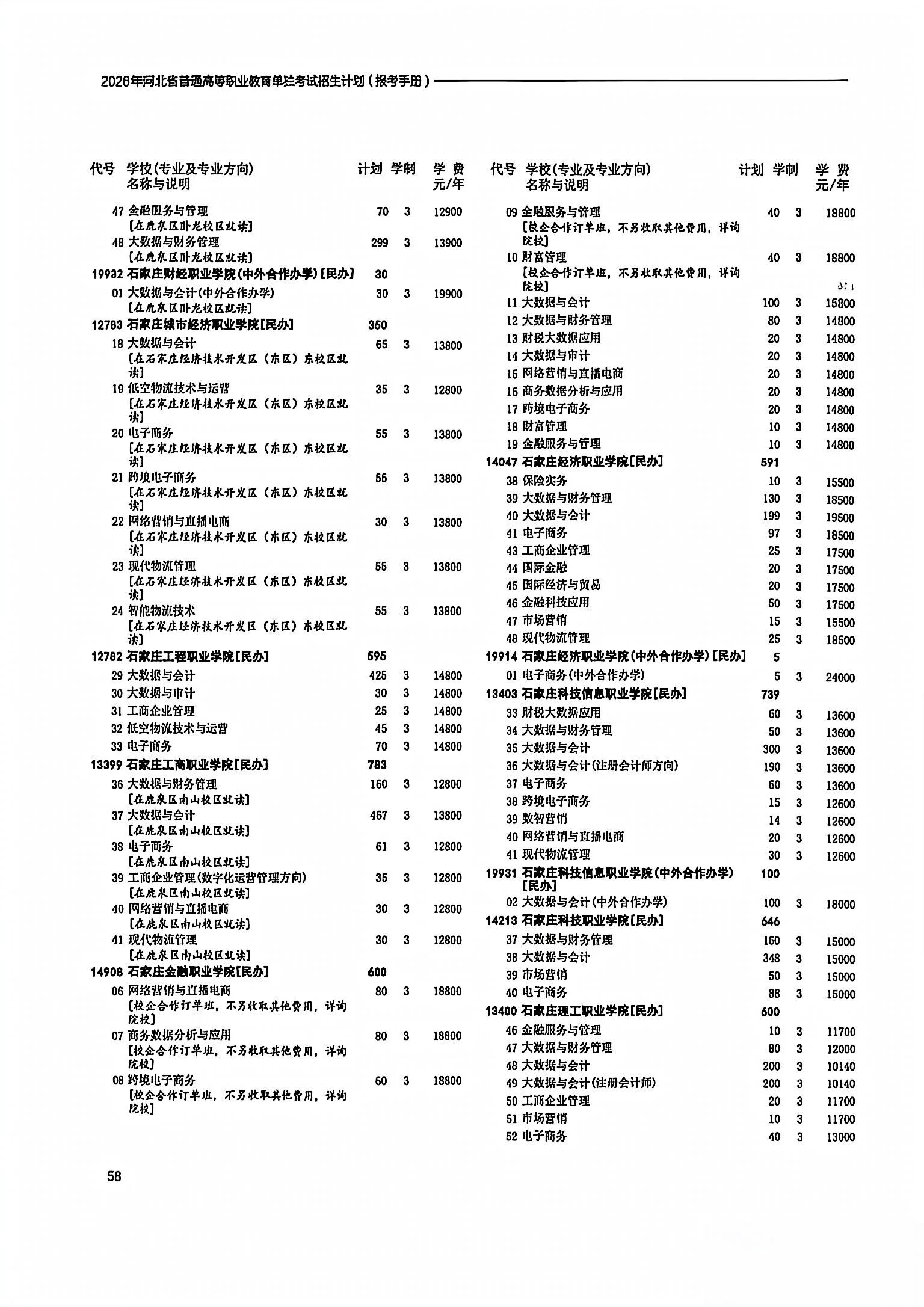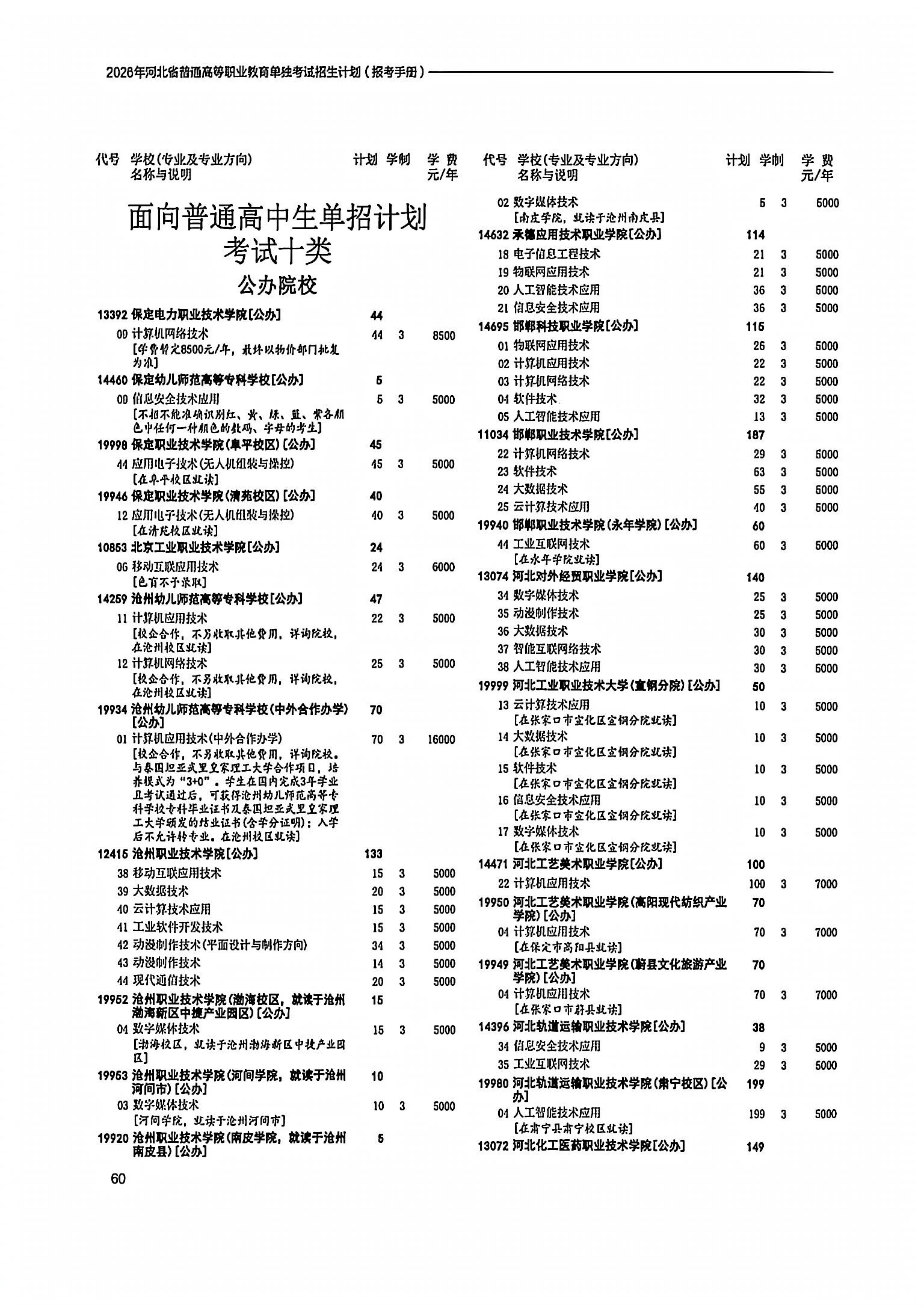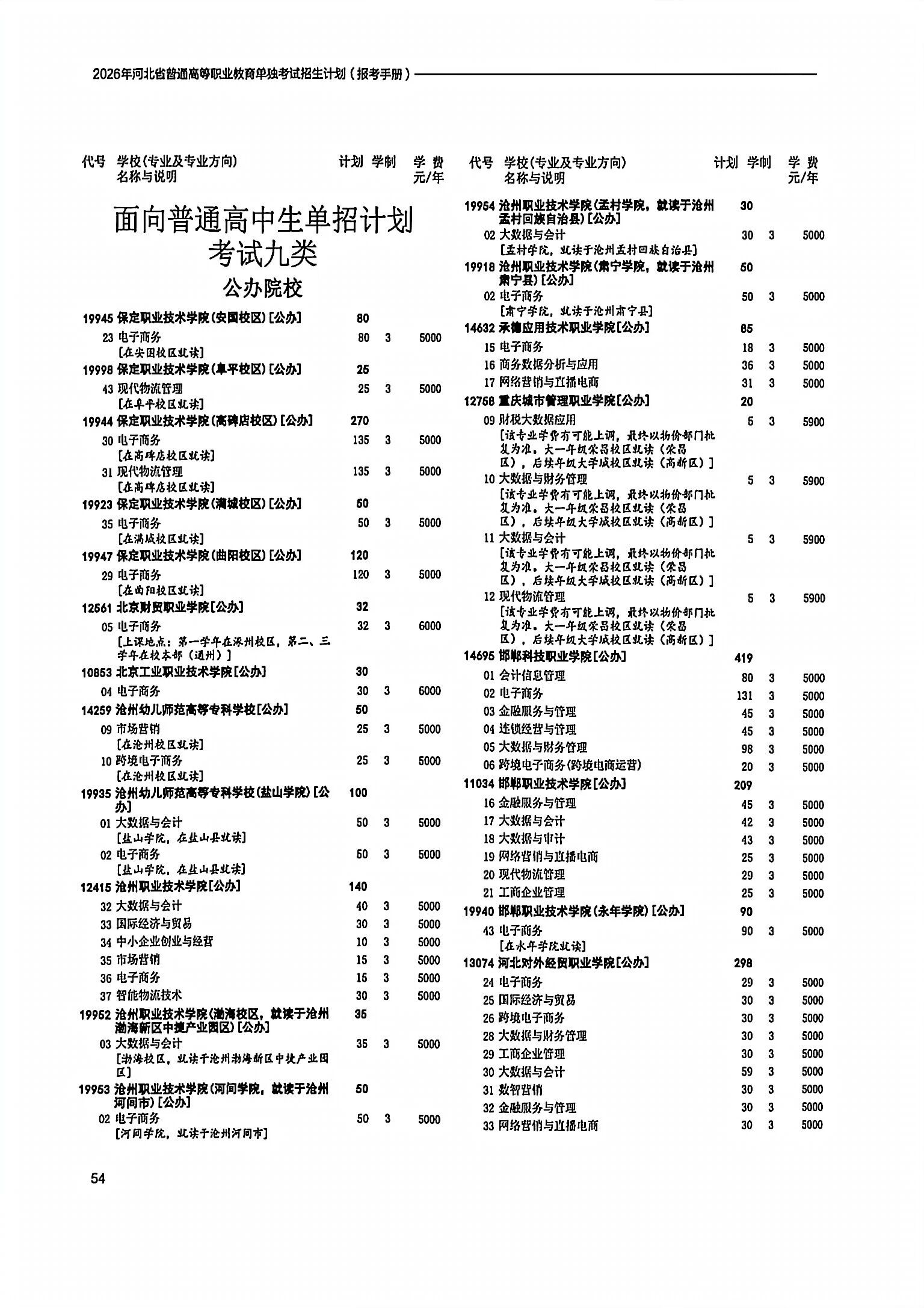 以下是《2026年河北单招各院校招生计划》大家可以提前参考~