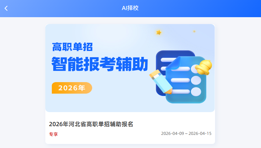 即日起,商户可在【志愿填报 - AI择校】列表中找到2026年报名辅助项目进行使用。
