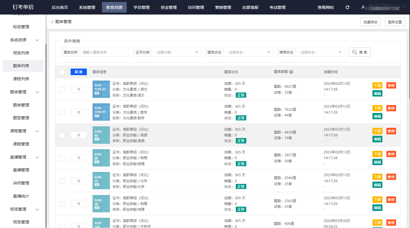题库是单招机构的核心竞争力。钉考单招直接配齐: