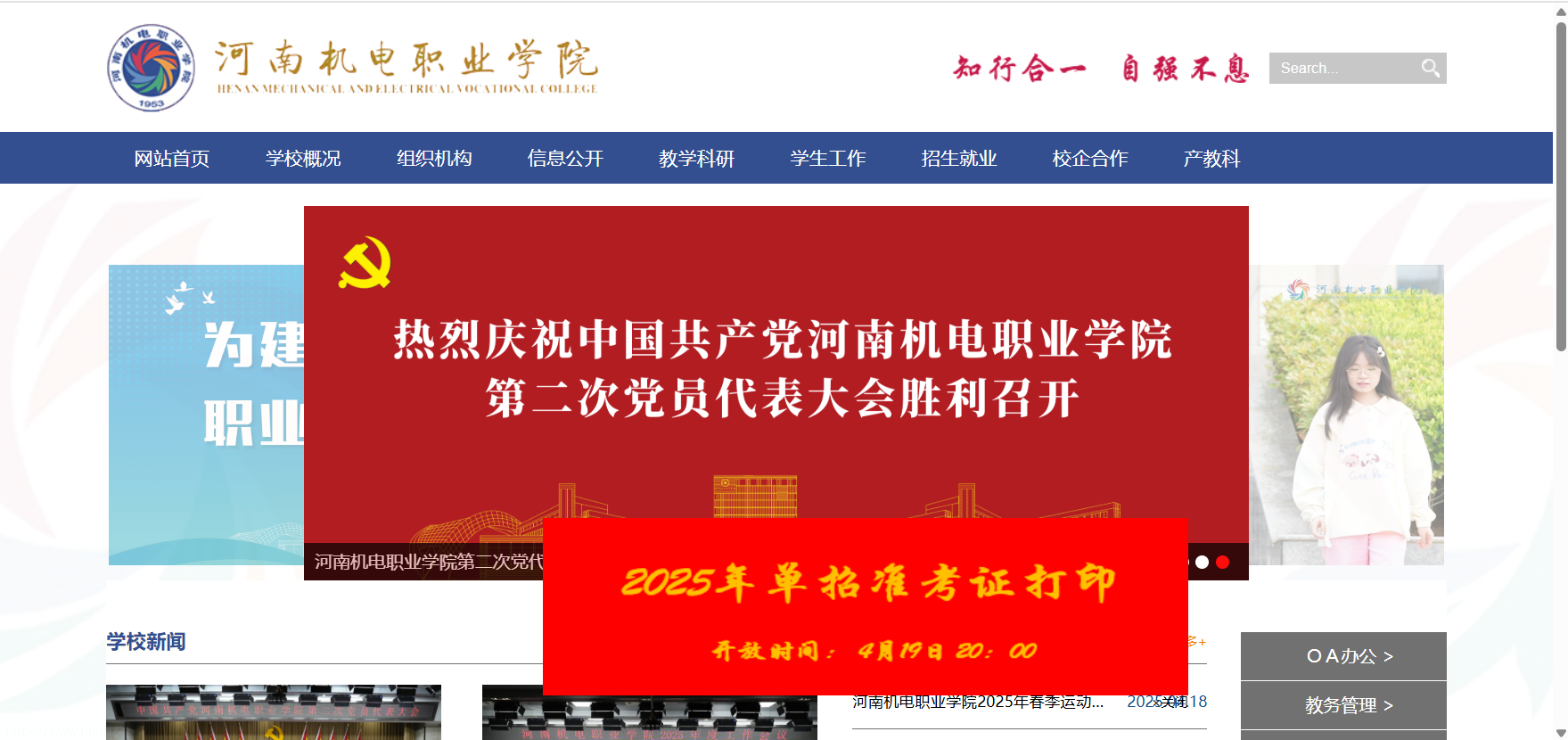考生于 4 月 25 日登录河南机电职业学院招生信息网(<http://zsjy.hnjdxy.cn/>)查询成绩及拟录取结果。